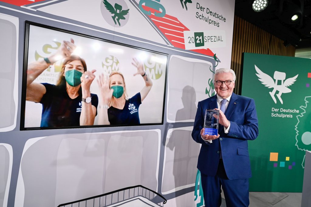 “Mit individuellen Lernplänen, Logbüchern und Lernbüros gelang es der Städtischen Gesamtschule Münster-Mitte (…) ihr Konzept des eigen­verantwortlichen Lernens in den digitalen Raum zu über­führen und dort weiter­zu­entwickeln.”, heißt es in der Begründung der Jury rund um Bundespräsident Frank-Walter Steinmeier.