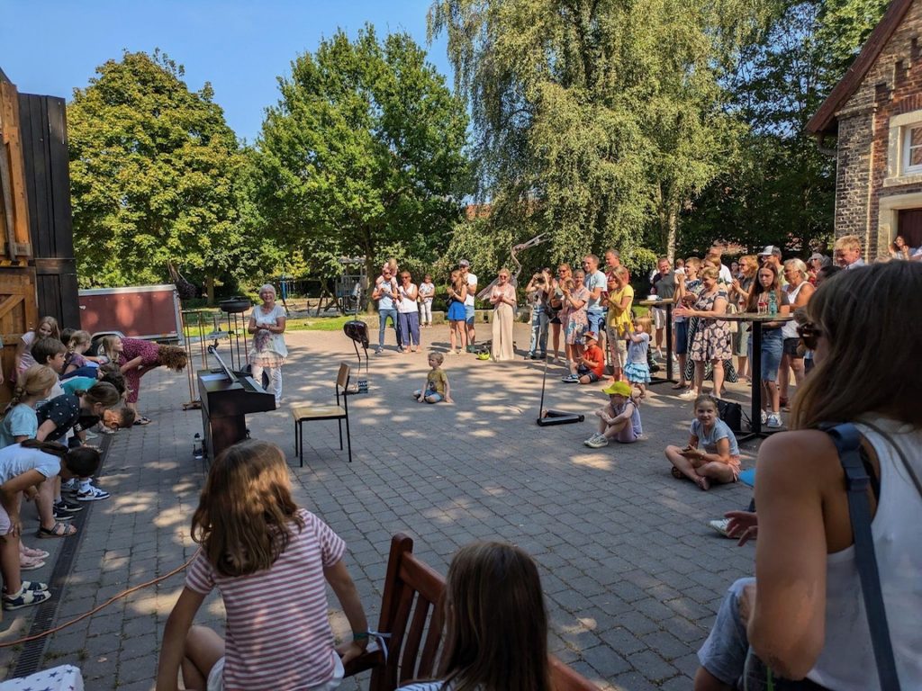 Am letzten Wochende fand erstmals nach 2022 am Hof Hesselmann wieder das Festival “Kunst in Mecklenbeck (KiM)” statt. Viele Künster:innen aus Mecklenbeck stellen ihre Werke aus. Besonders erwähnenswert war es, dass mit Clara und Mia Stute zum ersten Mal zwei ehemalige PWS-Schüler:innen als Nachwuchskünsterlinnen ihre Kunstwerke präsentierten.