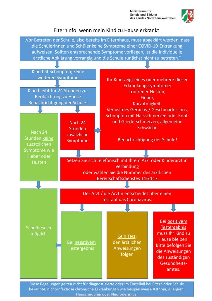 Es gilt weiterhin die Regel, dass Sie im Krankheits- oder Verdachtsfall Ihr Kind zu Hause lassen und es für mind. 24 Stunden genau beobachten. Kinder und Erwachsene sind von der Teilnahme am Schulbesuch ausgeschlossen, wenn sie