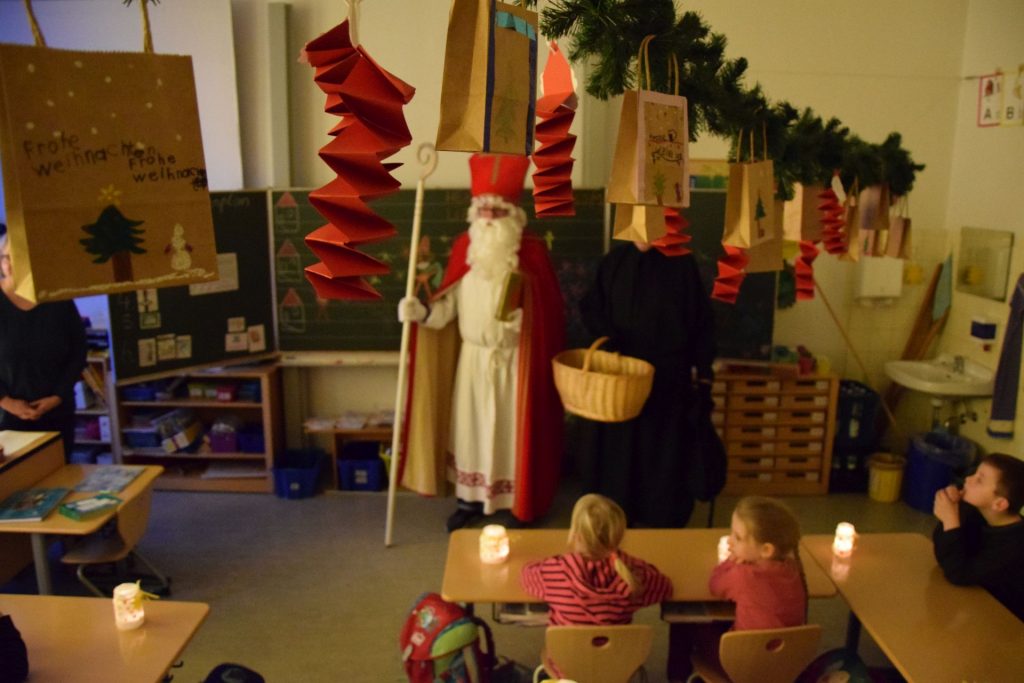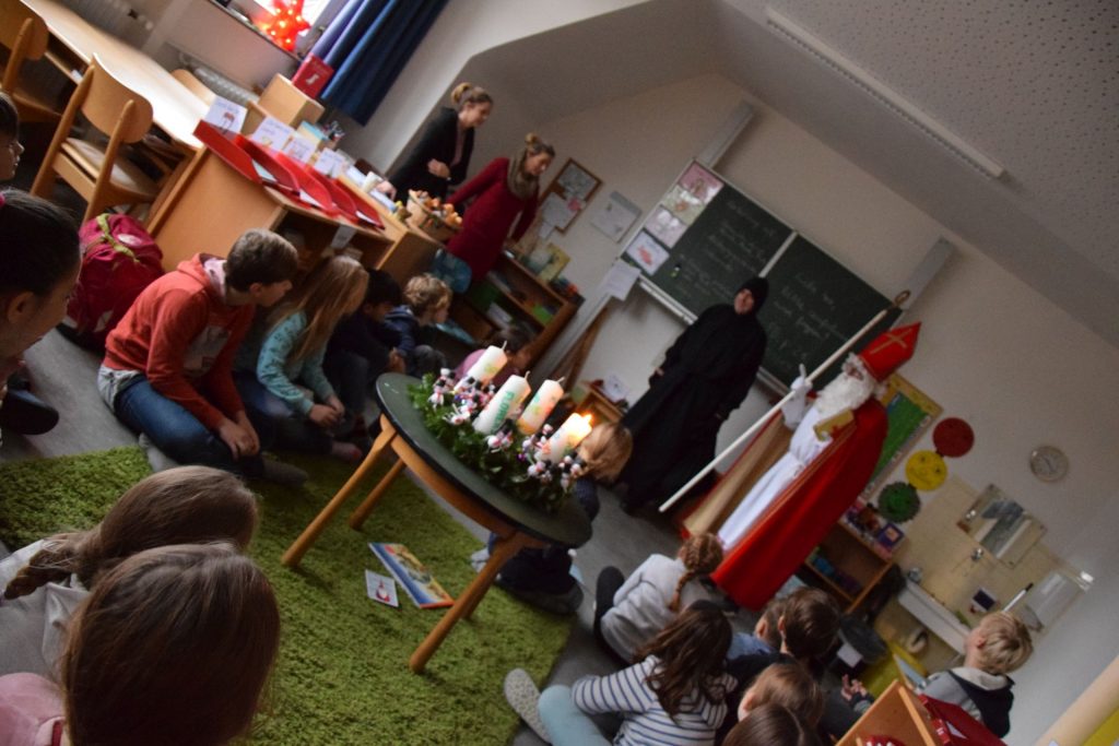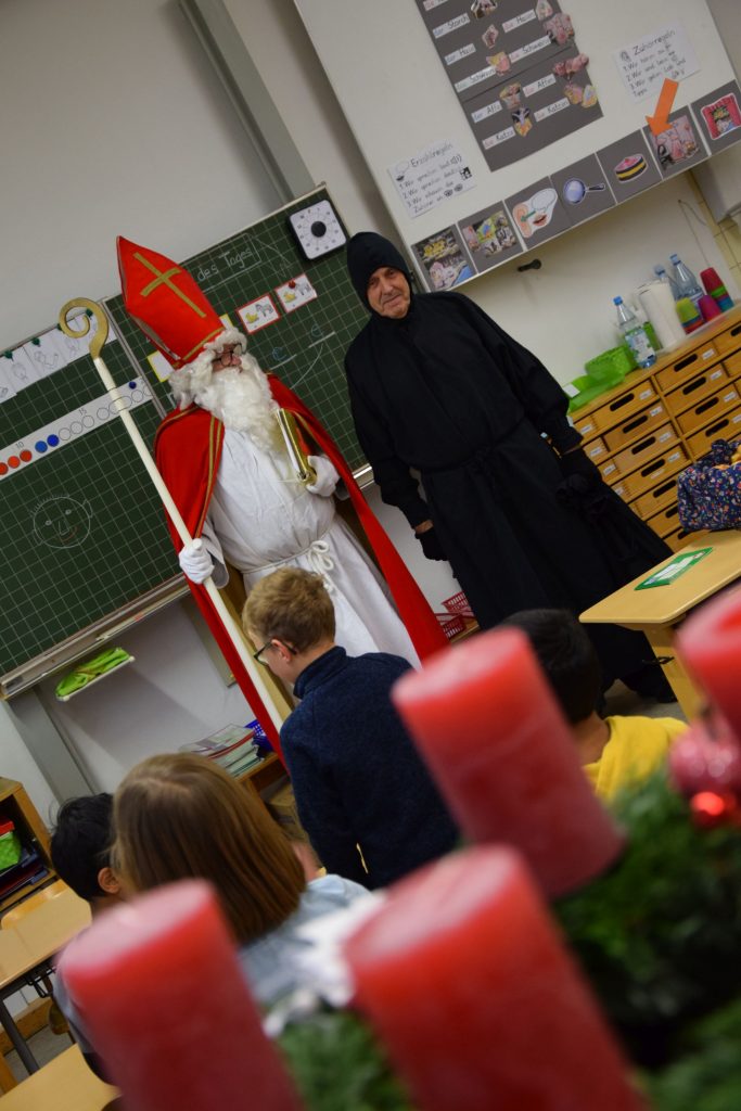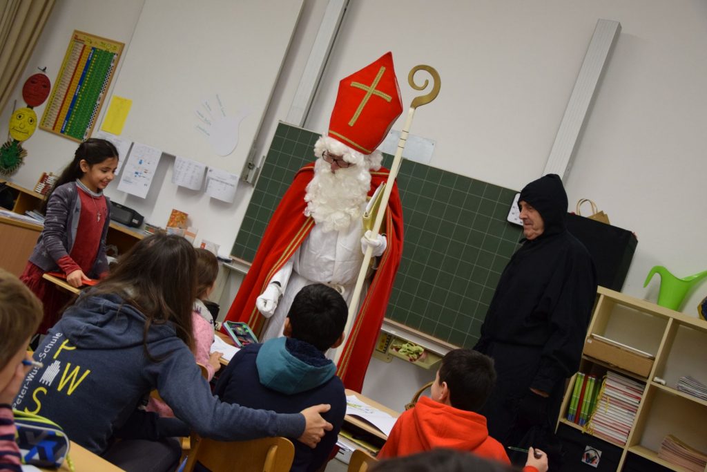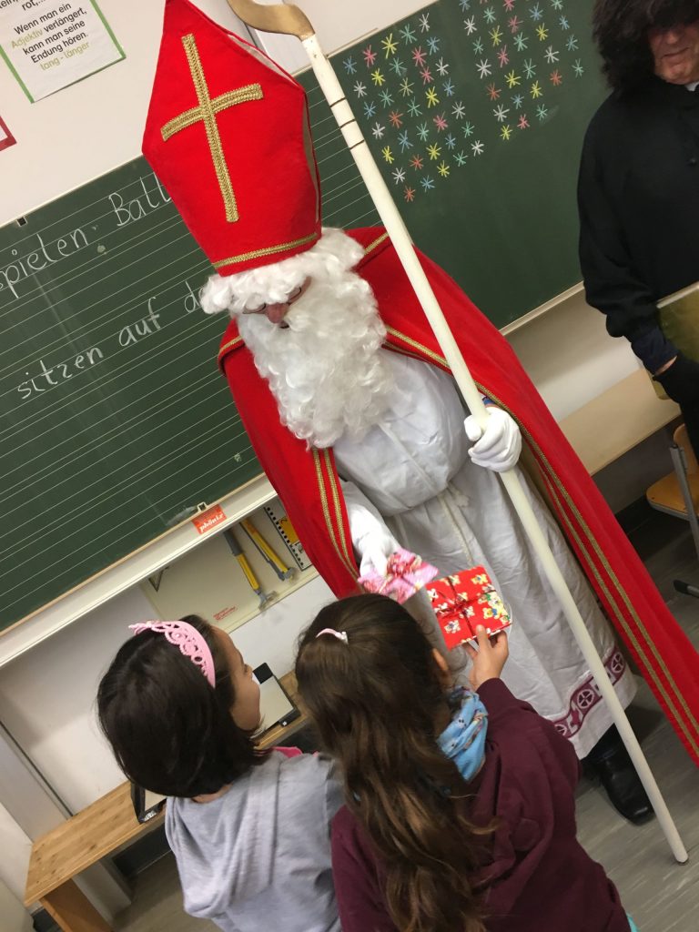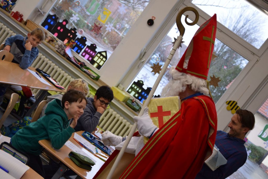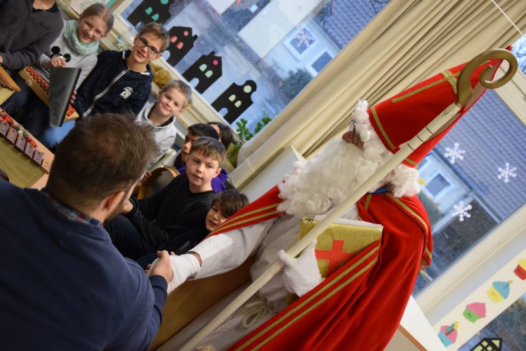 Am 6. Dezember war die Aufregung in der Peter-Wust-Schule groß, denn der Nikolaus besuchte die Kinder auch in diesem Jahr. Empfangen wurde er mit Beiträgen, Gedichten, Liedern und Geschichten. Mit dabei war natürlich auch wieder sein Helfer Knecht Ruprecht. Weil die Kinder und Erwachsenen aber auch in diesem Jahr fleißig und artig waren, hatte er mal wieder nicht viel zu tun. Daher waren die Säcke für die Klassen wieder prall gefüllt und alle Kinder bekamen einen leckeren „Weckmann“!